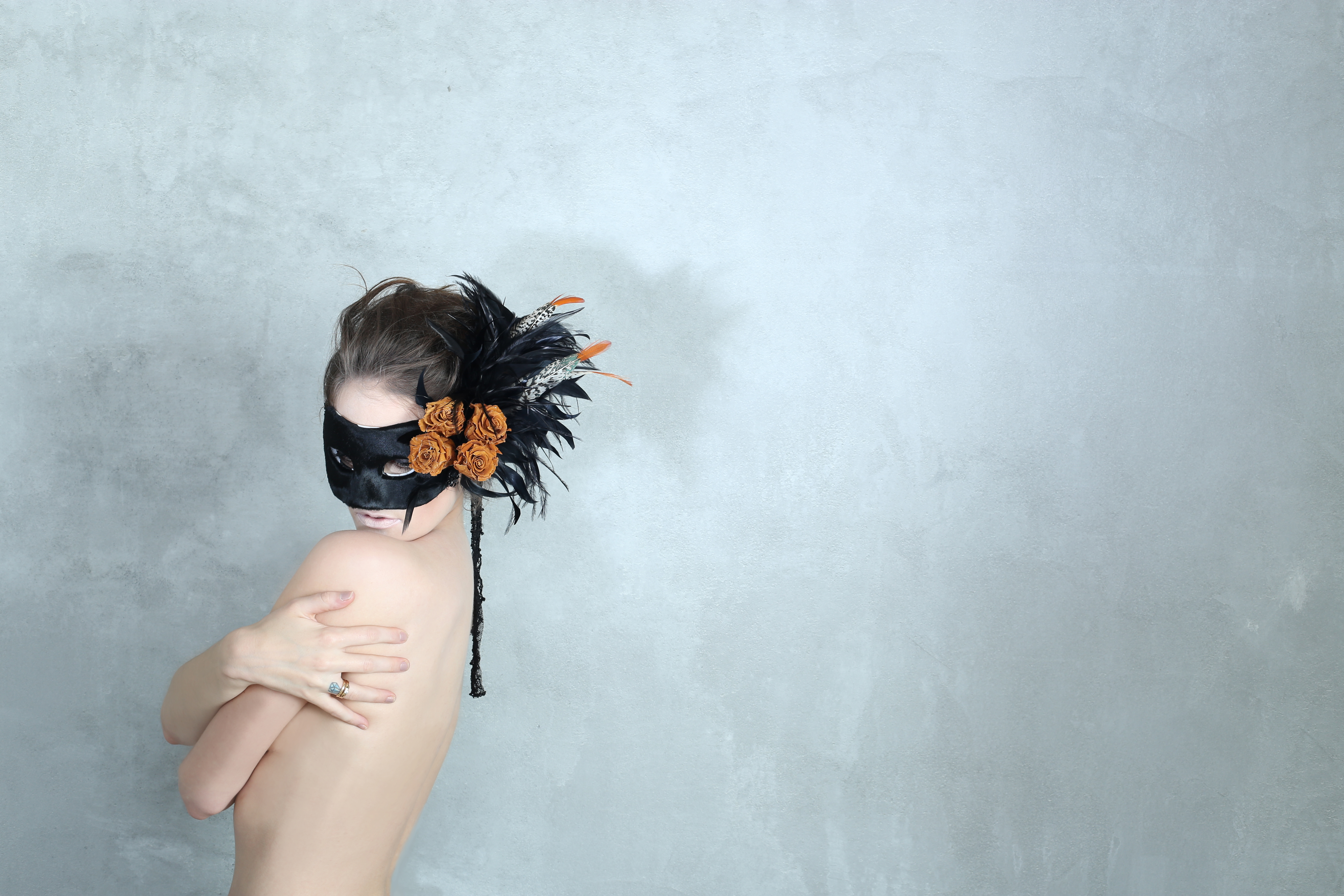 FEATHER/PRESERVED ROSES/SPAWN LEATER/POLYESTER/GLASS BEAS/PLASTER
